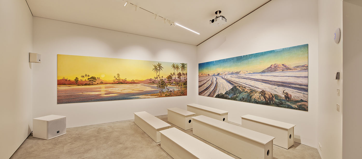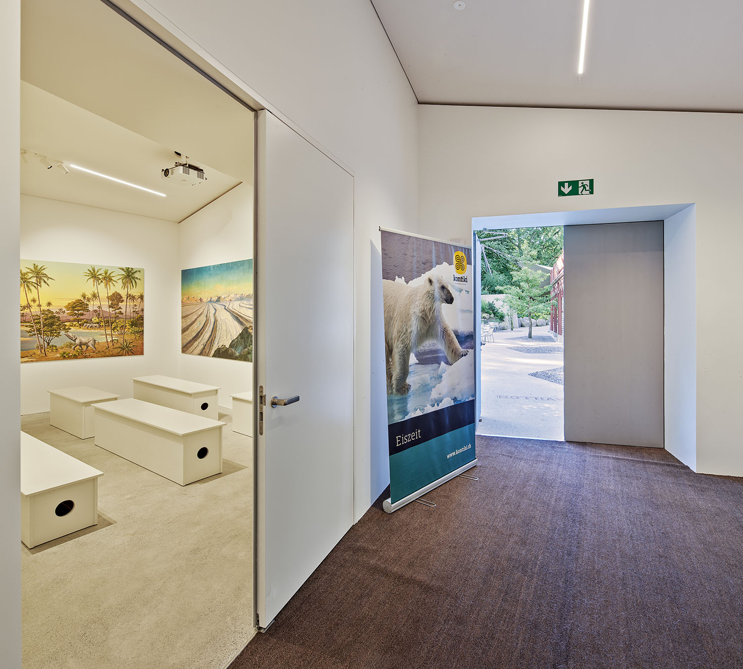 Um die weggefallene Ausstellungsfläche zu ersetzen, errichtet man ein kleines Museumsgebäude. Der fensterlose Neubau lehnt sich in seiner Form an den vorhandenen Sandstein an und ist räumlich wie ein umgestülpter Fels gestaltet. Die Idee des Architekten: Man nimmt Material aus dem Fels und schichtet es daneben sinnbildlich zu einem Gebäude auf. Der Beton wurde etwa zur Hälfte aus dem Ausbruchmaterial für die neue Felsenwelt erstellt.