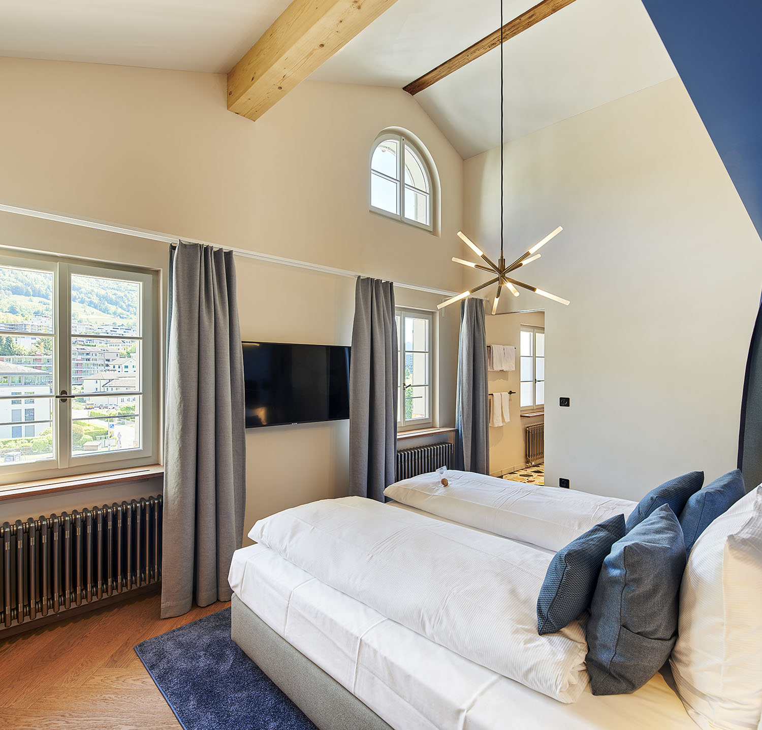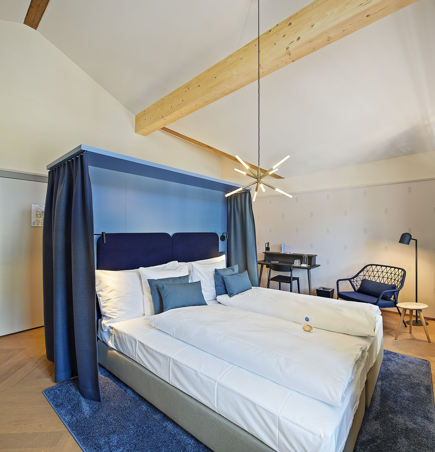 Inhaber Kilian Henseler ist stolz auf das Ergebnis: «Die Renovierung des Hotels Seehof war für mich ein Herzensprojekt. Wichtig war mir, dass die Grundsubstanz und der Charakter des unter Denkmalschutz stehenden Gebäudes erhalten bleiben. Vieles wurde bewusst wieder in den Originalzustand versetzt.»