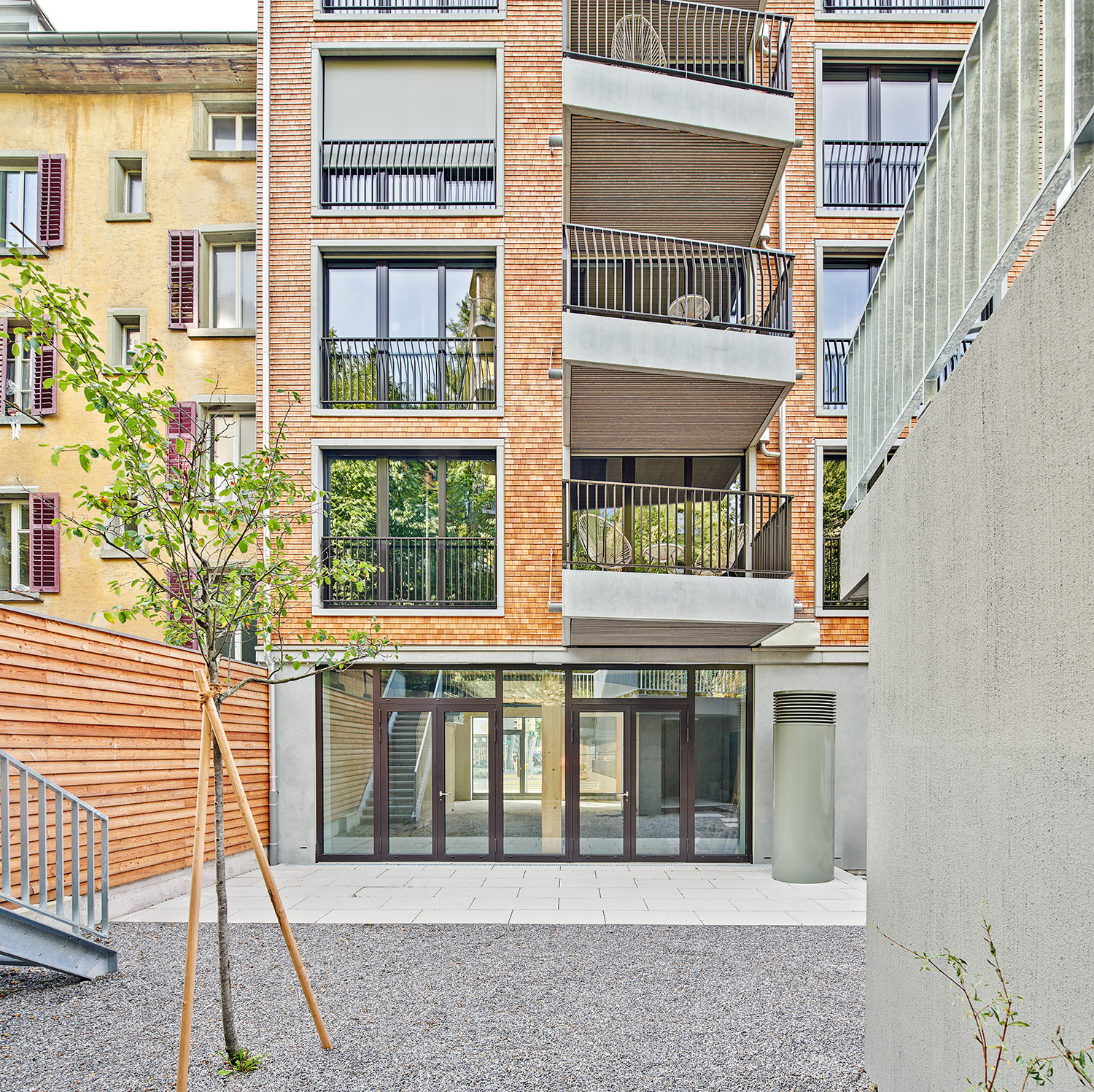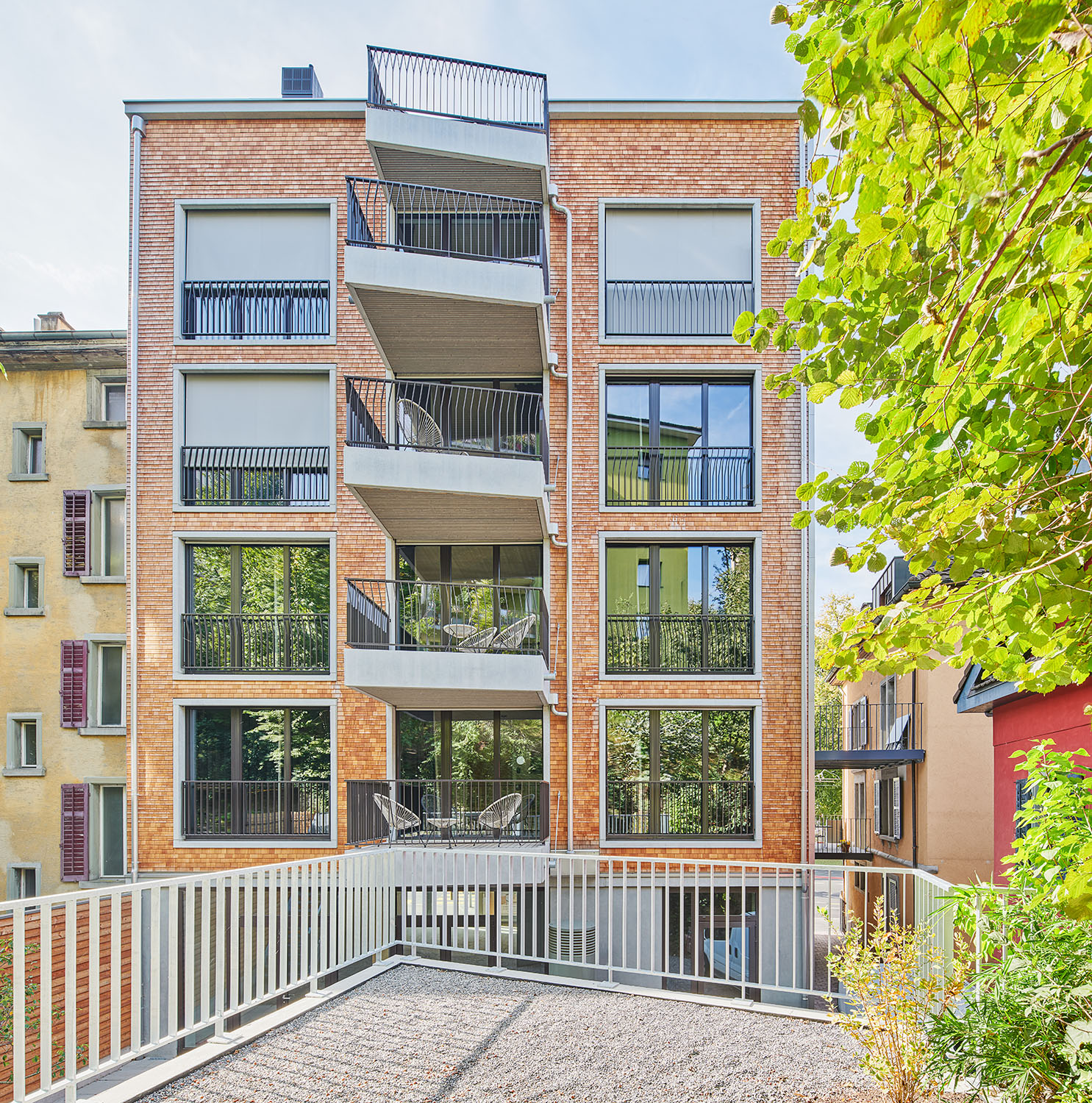 Das Mehrfamilienhaus ersetzt einen Bau mit Mietwohnungen aus den 50-er-Jahren an guter Adresse im Wesemlinquartier von Luzern. Die Auseinadersetzung mit Baustruktur und der Materialität der Umgebung hat zusammen mit der Prämisse baurechtlicher Vollausnutzung zu einer spezifischen Gebäudeform mit einem Giebel in Querrichtung geführt. Das Haus bietet geräumige Mietwohnungen in gehobenem Standard und ist in Minergie-Standard ausgefürt.