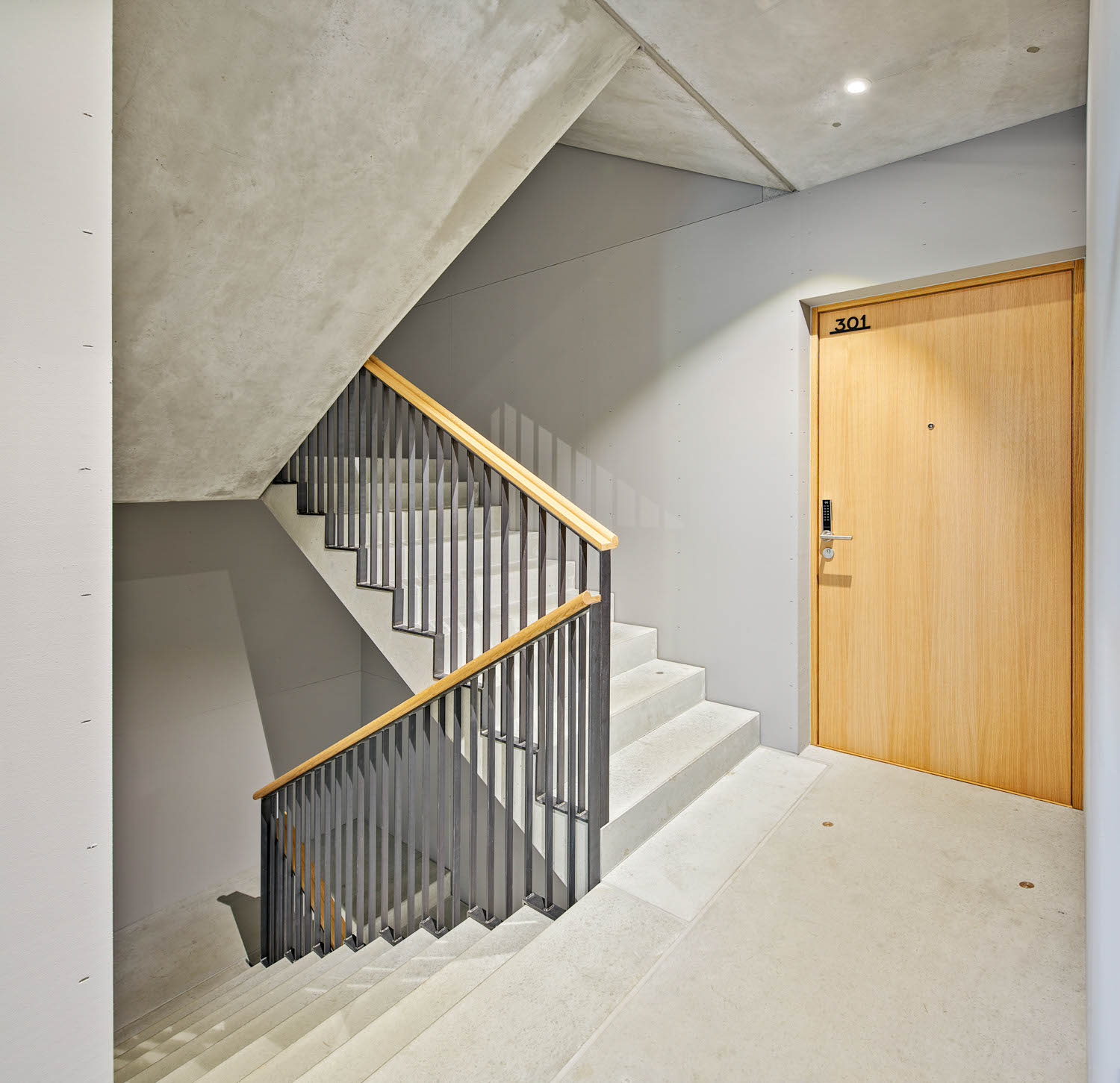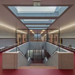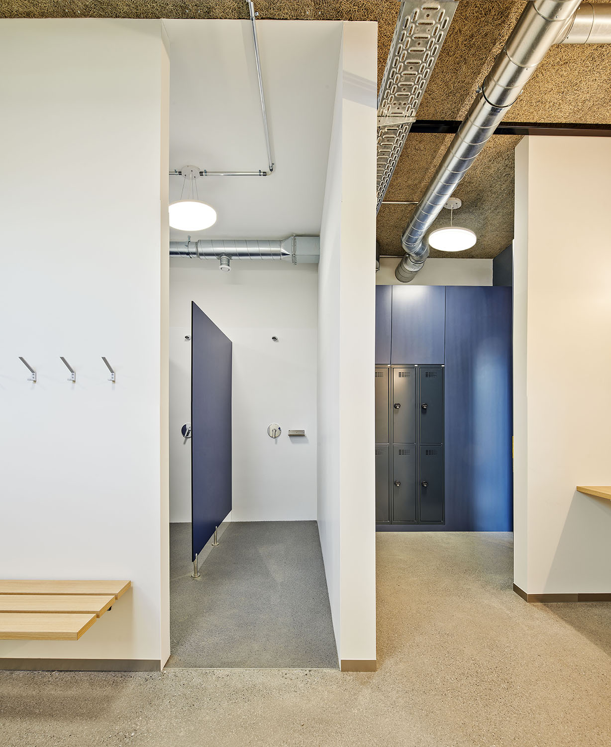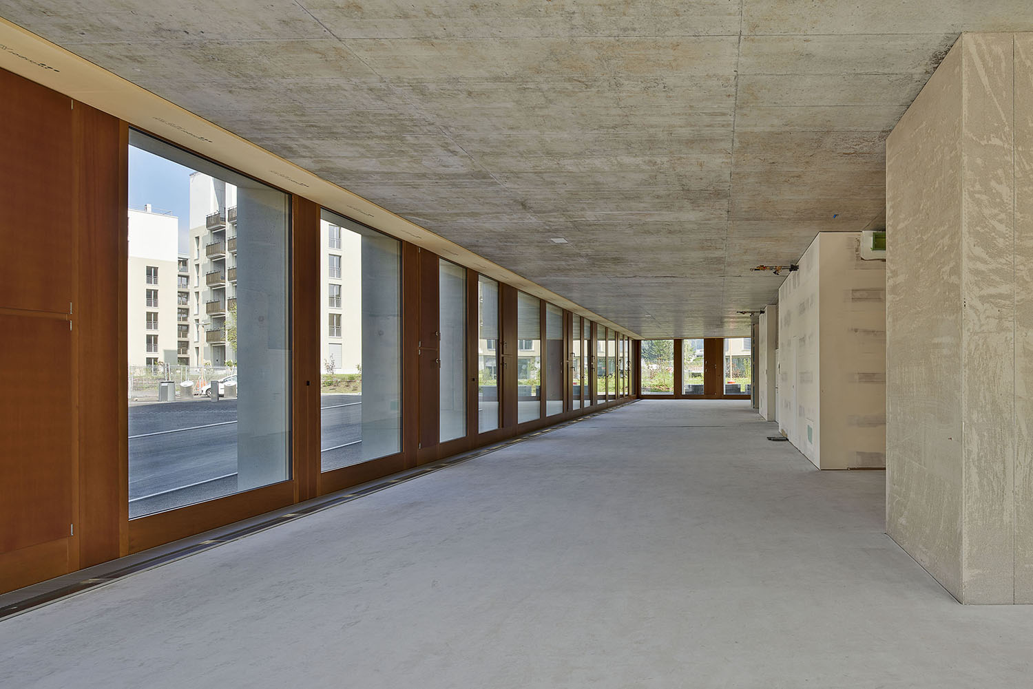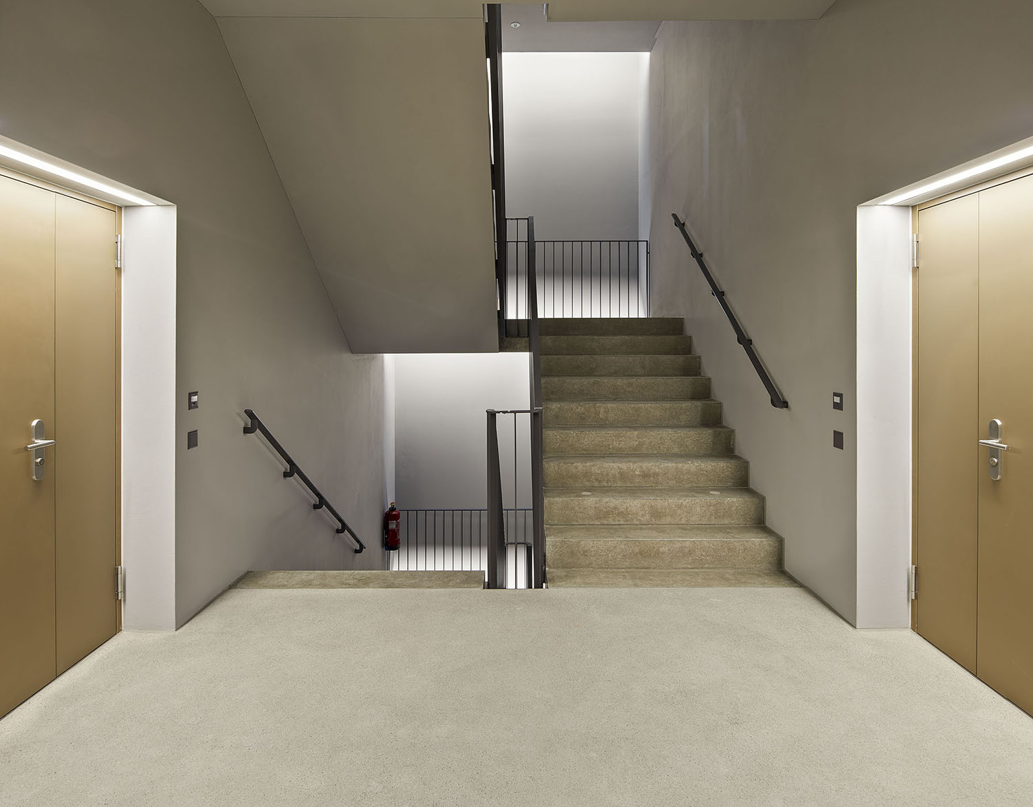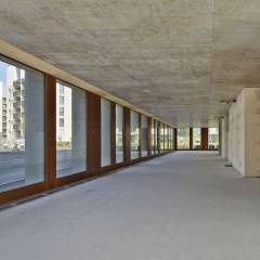 Ein weiterer Schwerpunkt liegt auf der Integration des Gebäudes in seinen spezifischen urbanen Kontext. Die Fassaden erscheinen als Neuinterpretation der bestehenden industriellen Gebäude mit ihren signifikanten Lisenen (Mauerblenden), die gleichzeitig die räumliche und statische Struktur nach Aussen transportieren, während diverse Erdgeschossbereiche öffentlich zugänglich gemacht werden, um das Gebäude für seine Umgebung zu öffnen.