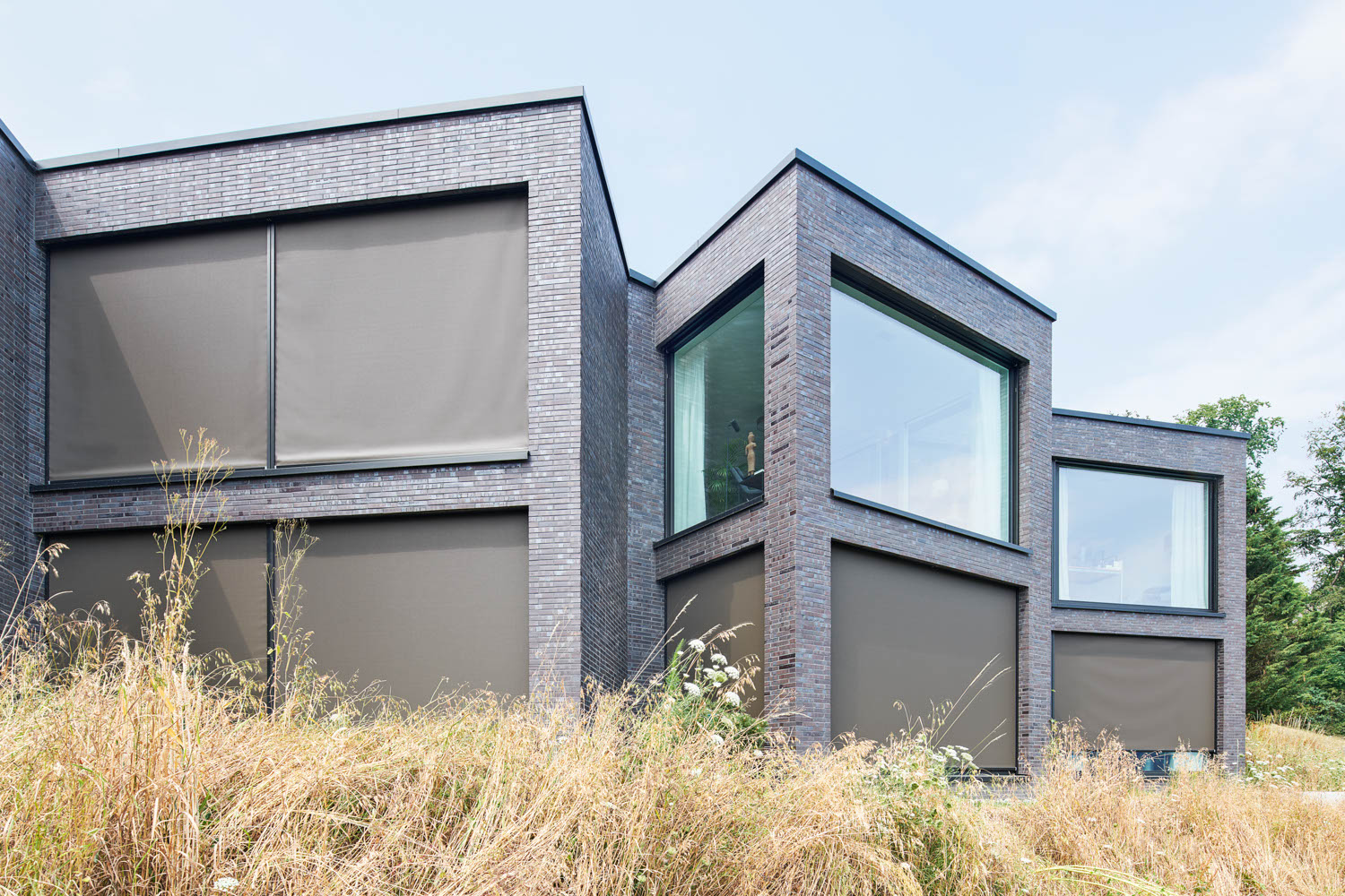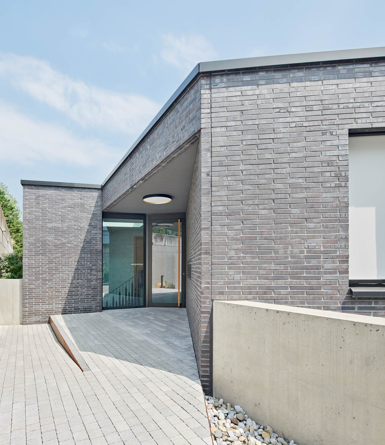 Der gestaffelte Baukörper liegt parallel zur St. Karlistrasse. Das Gebäude ist als Massivbau mit hohen Fensteröffnungen konzipiert, was der bestehenden Bebauung am Hang entspricht.Die Materialisierung mit einer traditionellen Klinkerfassade in Rottönen erinnert an die industrielle Vergangenheit.
