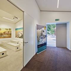 Das Sanierungsprojekt ermöglichte eine Umnutzung verschiedener Räume ohne das Gebäude zu erweitern! Dank verschiedenen Nutzungsverschiebungen konnte die Betriebsanforderungen an eine zeitgemässe und zukunftsorientierte Bibliothek erfüllt werden: die neue Caféteria befindet sich in den ehemaligen Räumen der Sondersammlung und der Lesesaal der Sondersammlung bezieht neue Räume im ehemaligen Lesesaal 2. Im UG gibt es neu eine begehbare Vitrine für die Präsentation von Sondersammlungsbeständen.